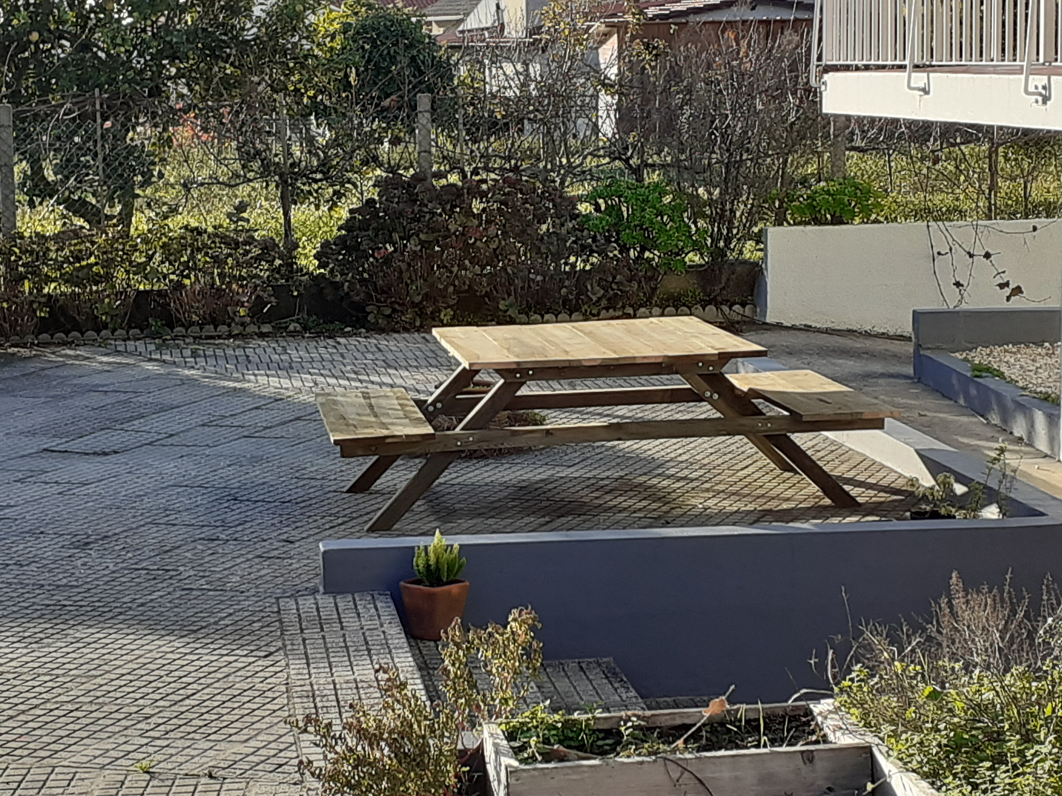 Er is toegang tot de ruime gedeelde tuin en de buitenkeuken. Ook is er een ruime picknicktafel beschikbaar waar u lekker buiten kunt zitten. In de tuin groeien verschillende groentes en fruitsoorten die geplukt mogen worden. Voor de kinderen is er achter in de tuin een ruime speelweide waar ze heerlijk kunnen spelen. In de speelweide houden we ook enkele dieren zoals kippen en konijnen.